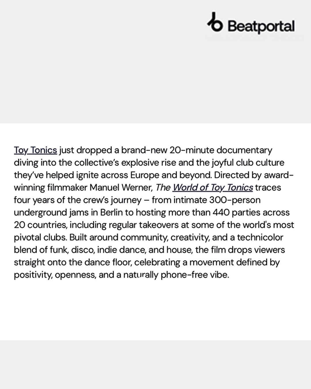 Toy Tonics is an independent music label and culture crew with international artists primarily based in Berlin.