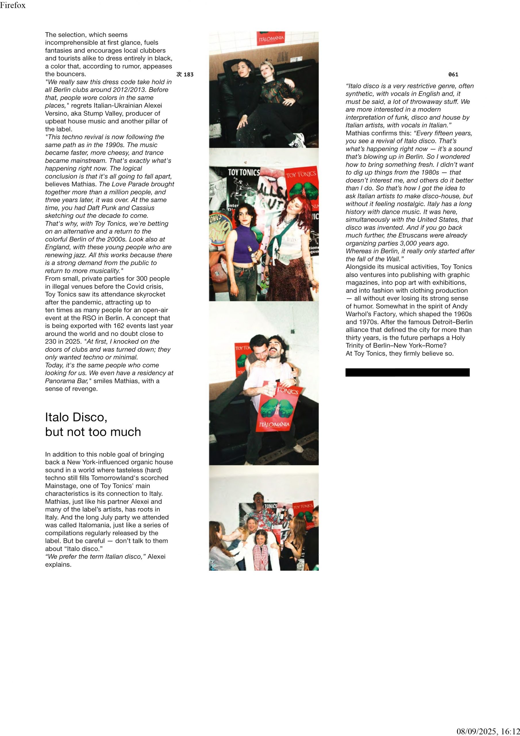 Toy Tonics is an independent music label and culture crew with international artists primarily based in Berlin.
